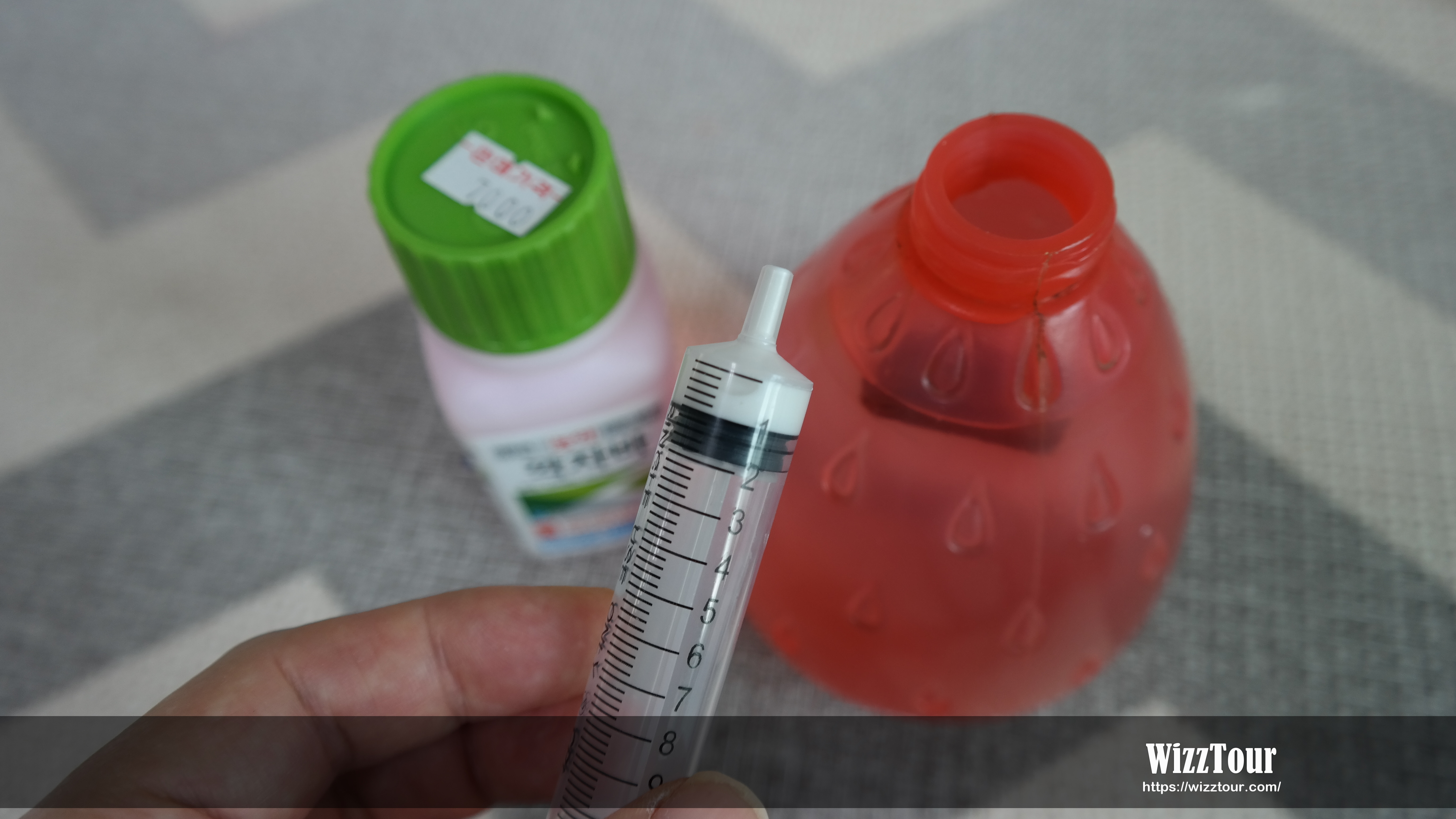 그래서 저는 주사기를 이용해서 적절한 용량을 사용합니다. 20:20 이니 1:1로 적용하면 됩니다. 1l의 분무기에 깍자바 1ml를 부어 주시면 됩니다. 아래 그림을 보시면 아시겠지만 저 정도만 넣어 주셔도 시중에서 파는 바이오킬 같은 제품 용량이 나옵니다. 서두에서도 말했지만 한 번 살포한다고 완벽하게 깍지벌레가 퇴치되지 않고, 알로 있을 수 있어 땅에도 뿌려줘야 하기 때문에 가까운 농약상에서 제품을 구매하는 것이 엄청난 이득입니다.