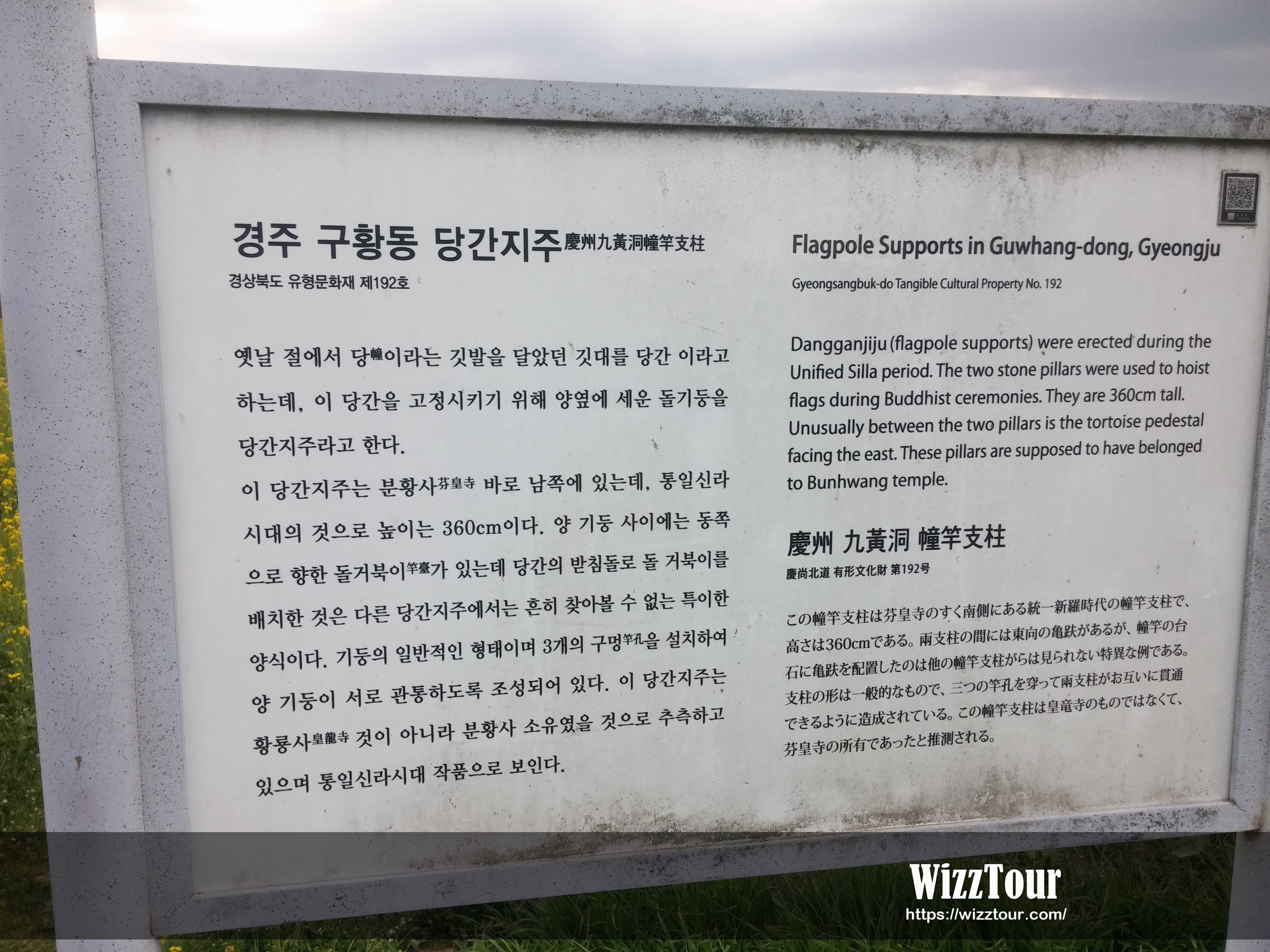 아무튼 청보리밭으로 꾸며진 분황사 일대에는 구황동 당간지주가 세워져 있습니다. 당간지주를 배경으로 사진을 남겨면 분명 좋은 추억이 될 겁니다. 또한 당간지주 사이의 돌거북이의 얼굴 표정도 꼭 보시길 바라고요.