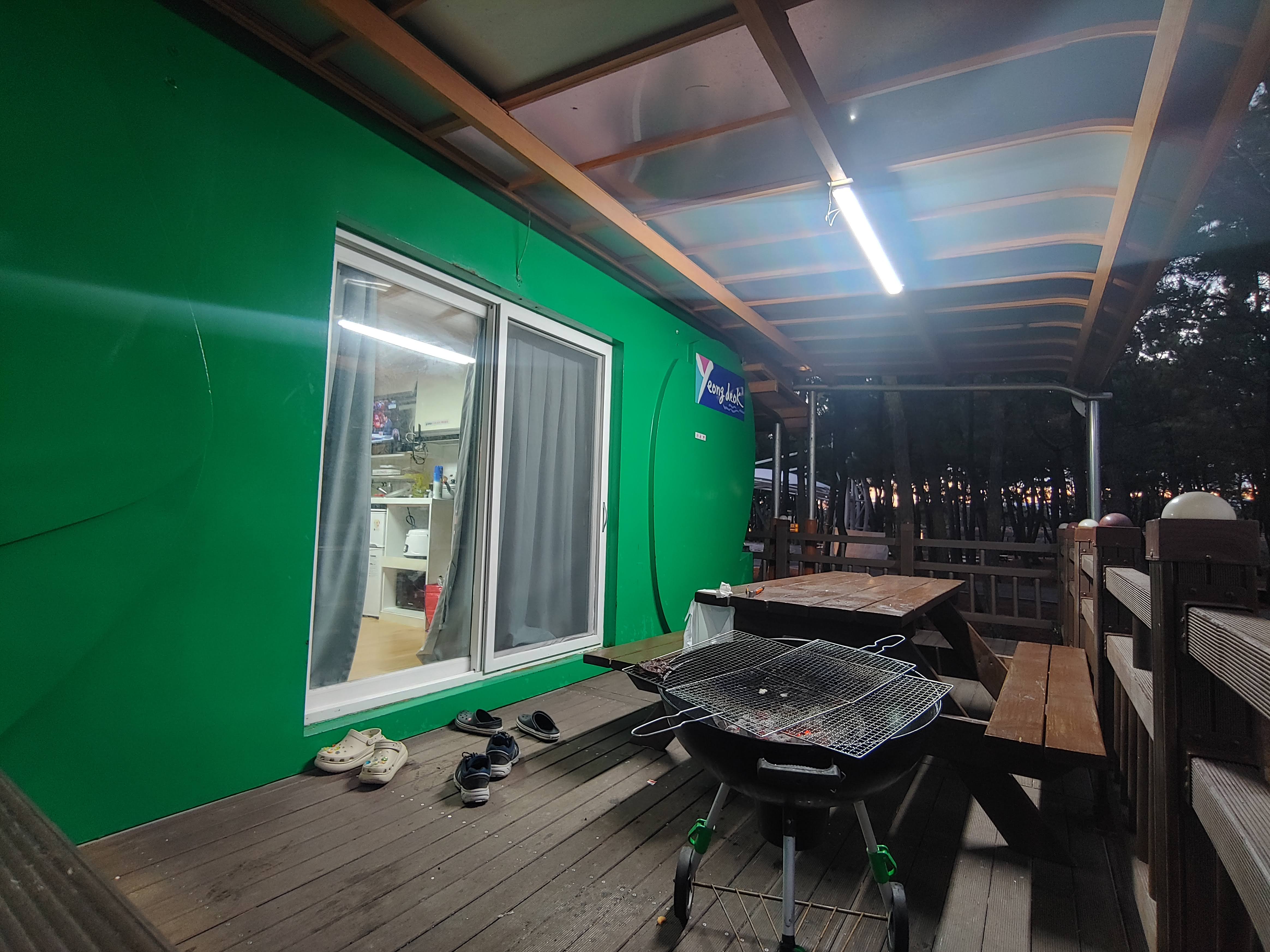 그래서 저희는 어느 순간부터 텐트가 아닌 카라반을 이용하고 있습니다. 왜냐하면 편하게 고기를 구워 먹을 수 있기 때문입니다. 카라반에 그릴이 마련되어 있기에 숯만 사 오면 쉽게 바비큐 파티를 할 수 있습니다. 비가 와도 숯불에 맛있게 구워 먹을 수 있어 좋답니다.