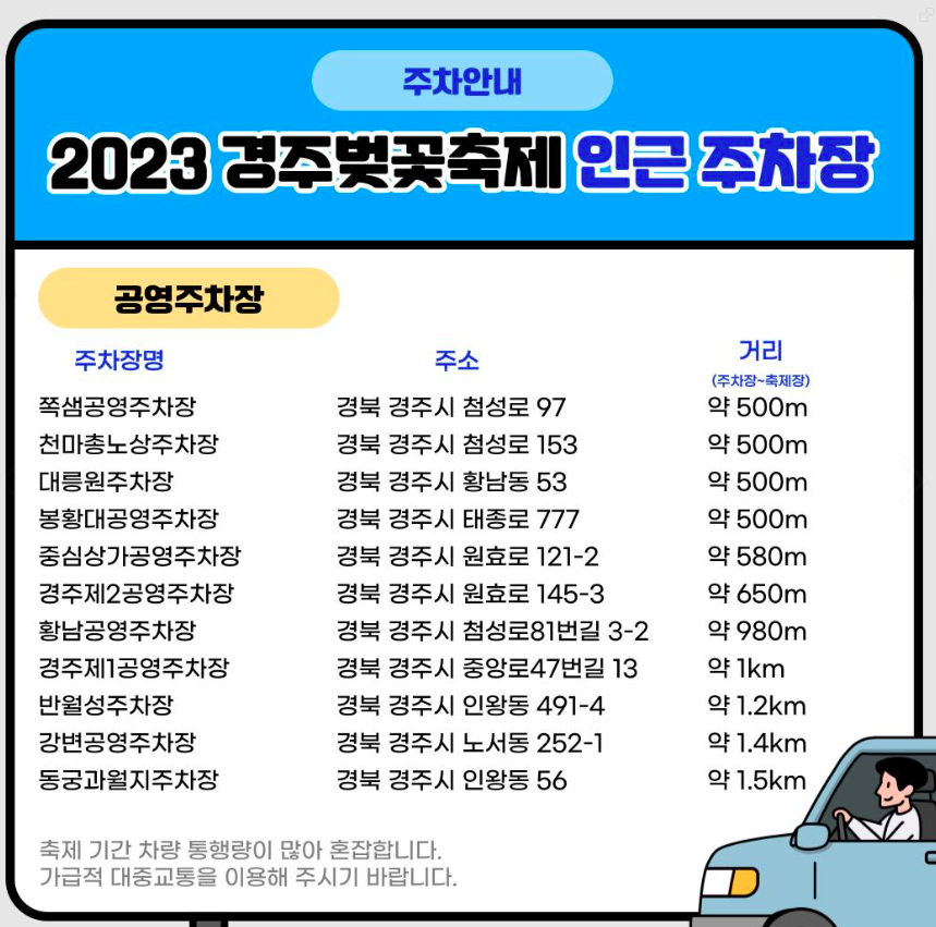 ※위치 : 경주시 충효동 1925-16, 흥무로 공영 주차장