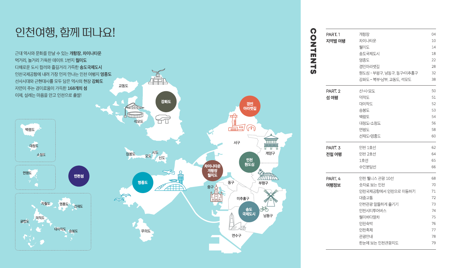 인천의 다양한 여행별 내용들을 잘 담고 있는 가이드북입니다. 이것 하나만 있어도 인천 여행 코스를 계획하는데 어려움은 없어집니다.