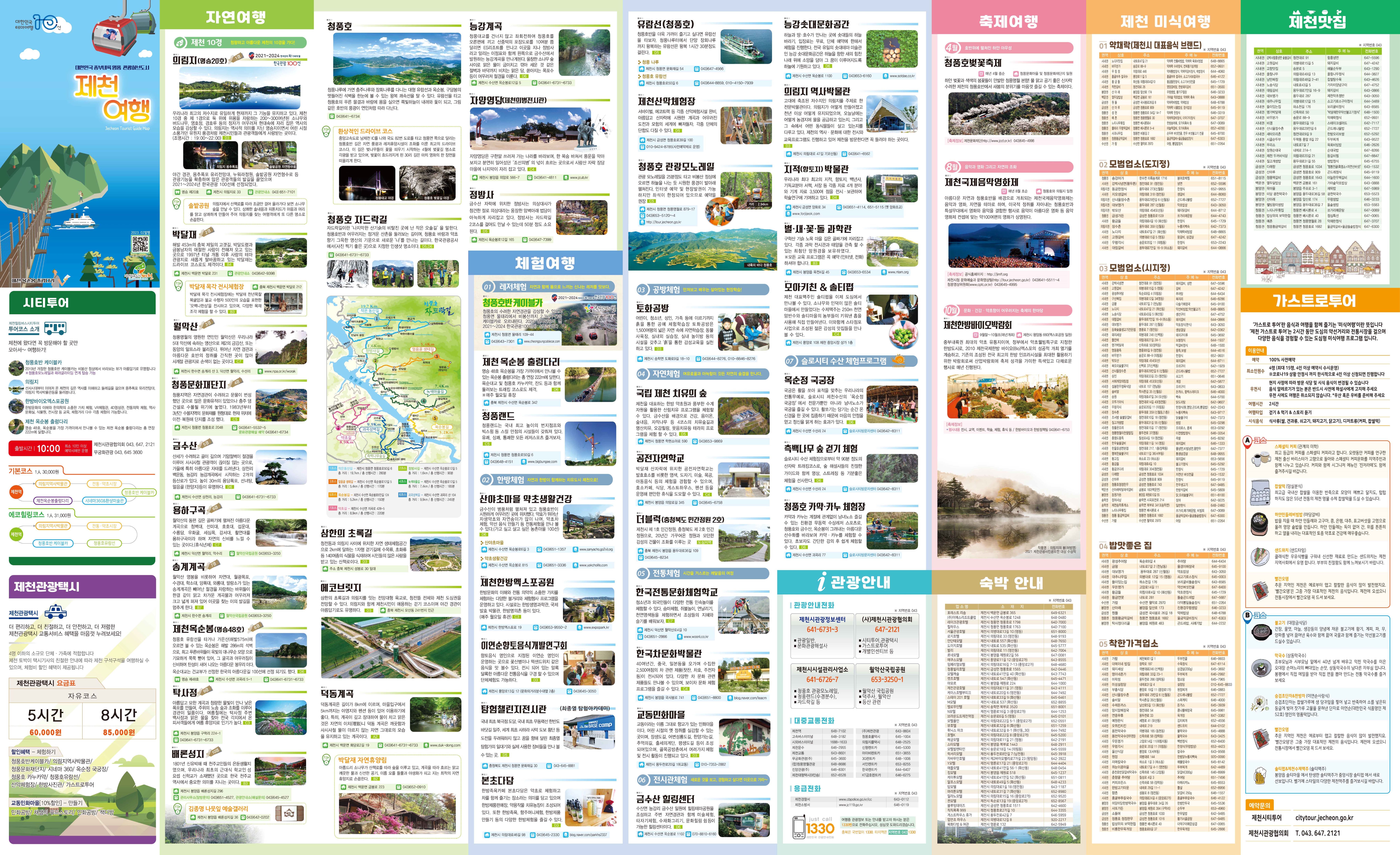 제천의 구석구석을 알아보기 위해서 관광지도를 다운로드 하셔서 여행 계획을 잡으시기 바랍니다. 지도는 제천군청에서 제공하는 것으로 지도면과 정보면을 보시면 어디를 가보셔야 하는지 확인이 가능합니다.