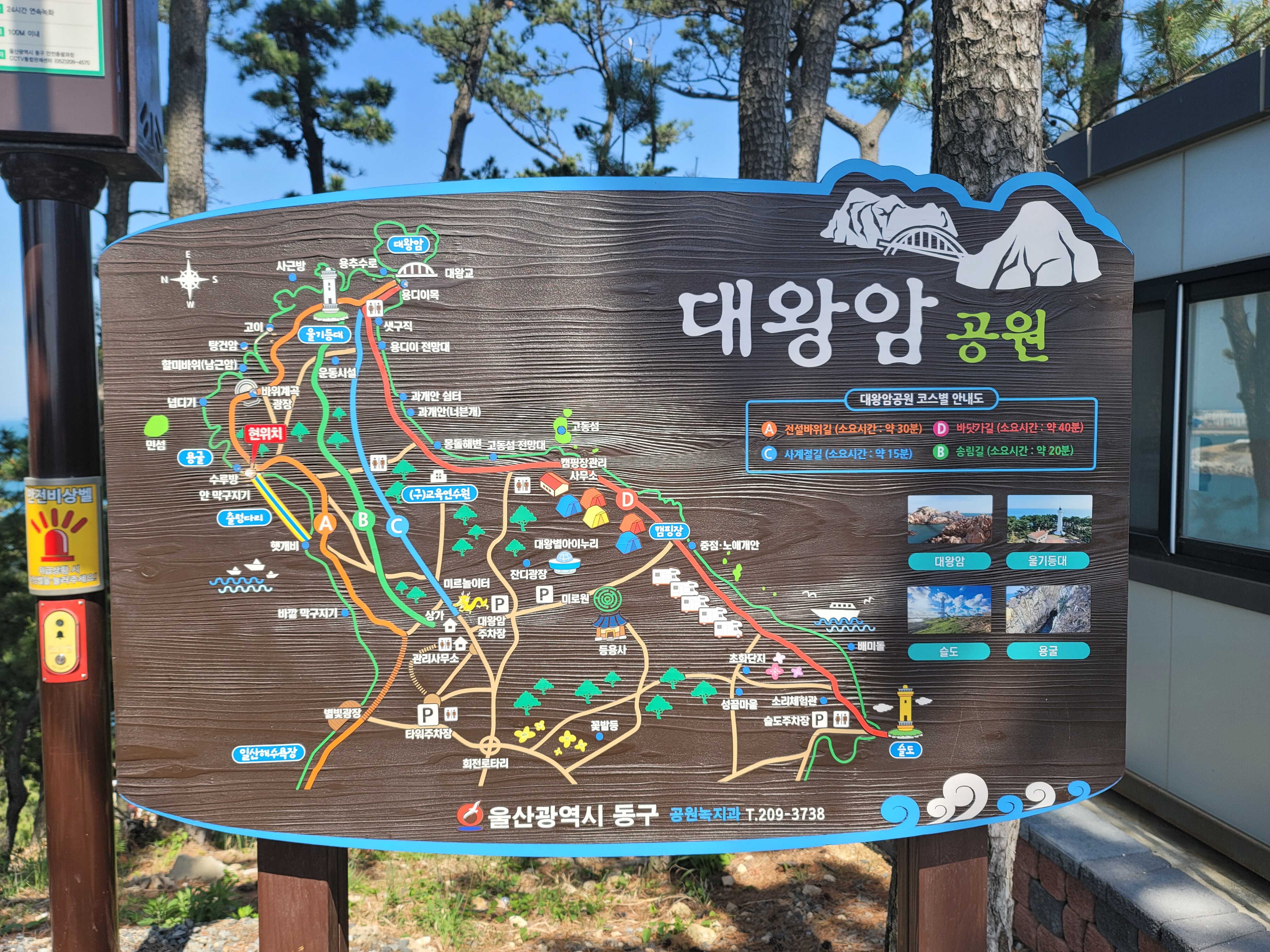 공원을 다니다 보면 길을 헷갈리지 않도록 안내문들을 볼 수 있습니다. 녹음이 짙어지는 계절일수록 대왕암공원은 더욱 진가를 발휘합니다. 연인과 혹은 가족끼리 아이들과 걷기 좋은 곳입니다.