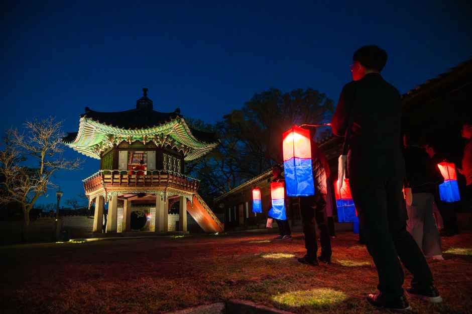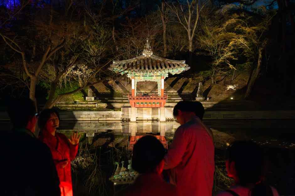 안내된 프로그램 기준: “- 해설사의 이야기를 통해 창덕궁의 역사·문화·조경을 자연스럽게 체험할 수 있는 야간 기행” 입니다. (현장 운영에 따라 변경 가능) (자세한 내용: https://www.kh.or.kr)